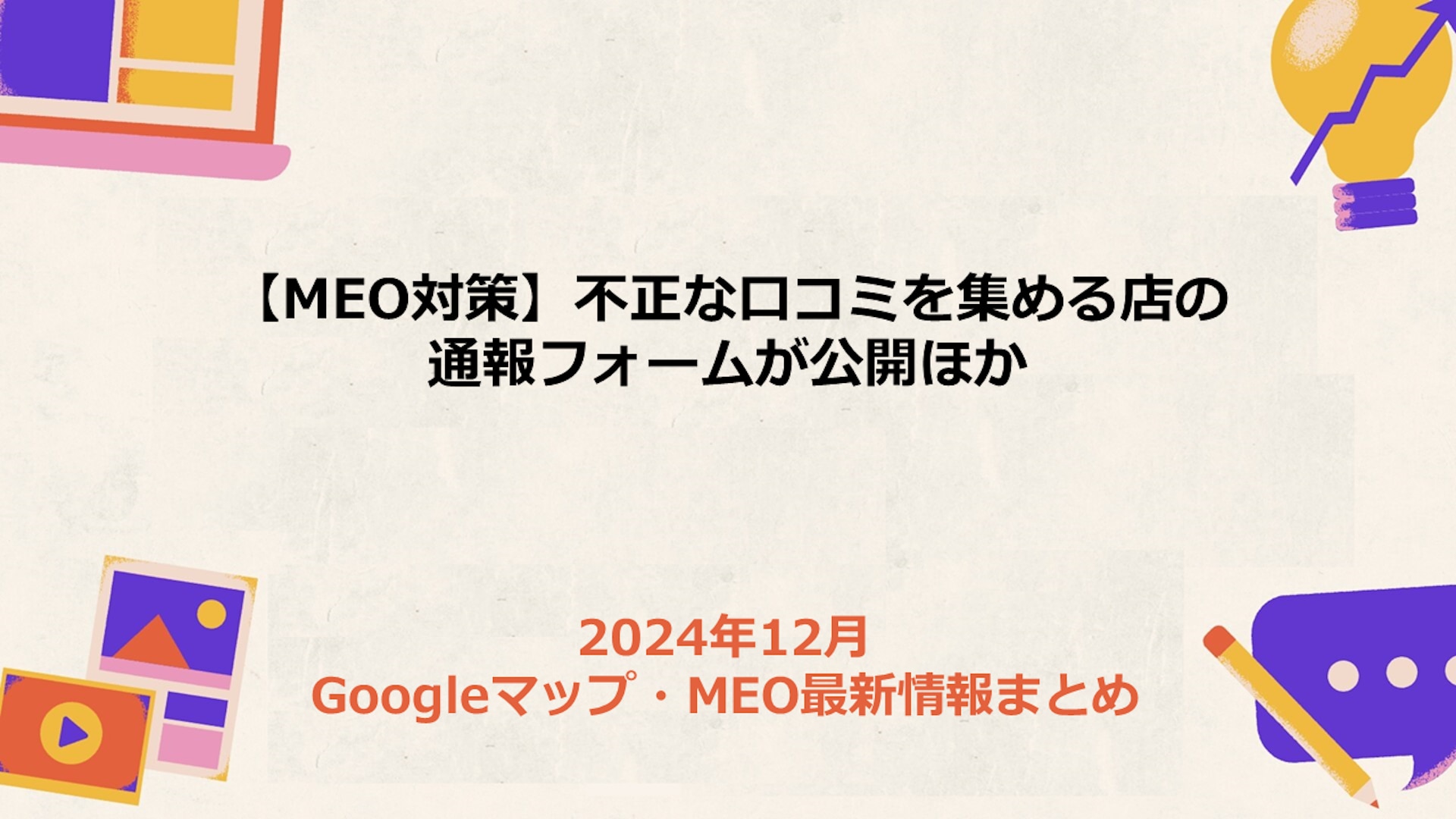 【MEO対策】不正な口コミを集める店の通報フォームが公開 ほか 2024年12月Googleマップ・MEO最新情報まとめ