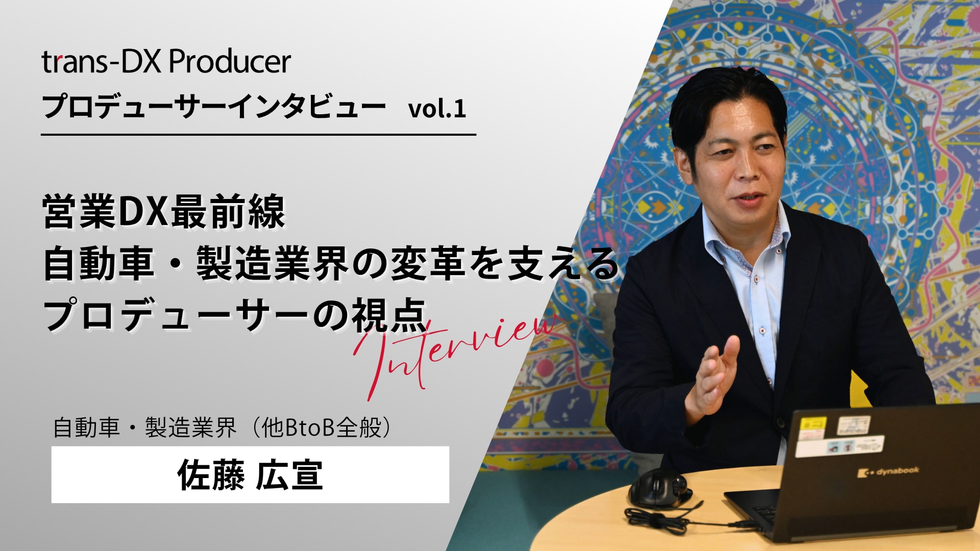 vol.1は、自動車・製造業界で活躍されているtrans-DXプロデューサー佐藤広宣さんにお伺いしました。